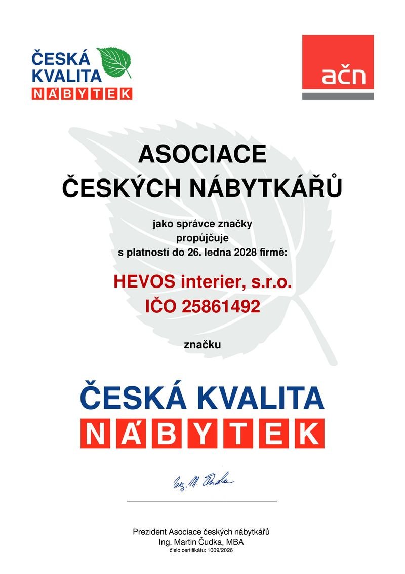 Jako první v České republice jsme obdrželi prestižní certifikát „Česká kvalita” – nábytek pro zakázkovou výrobu nábytku.