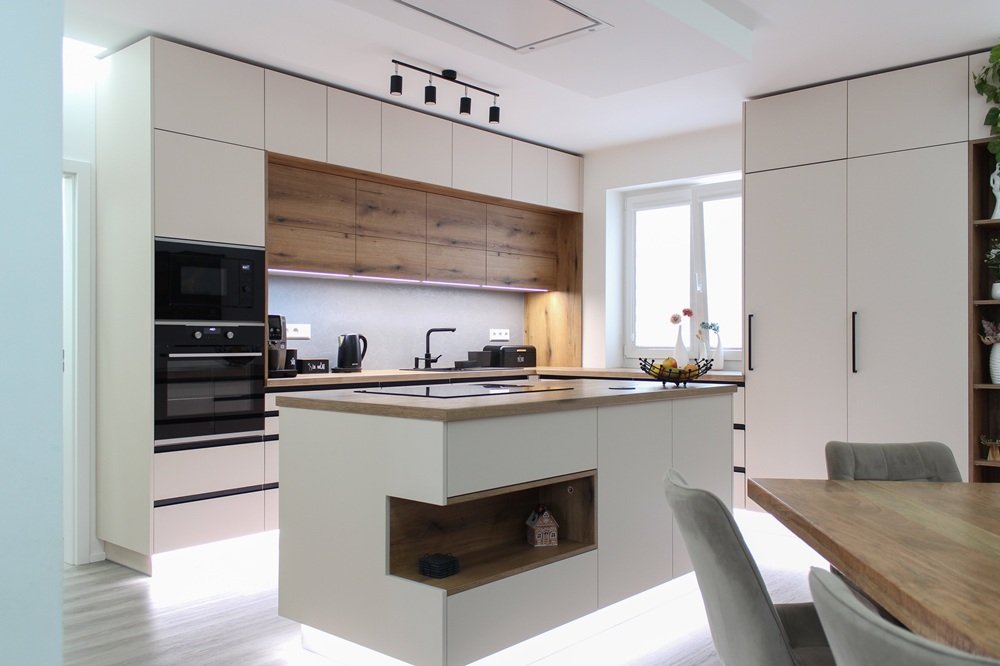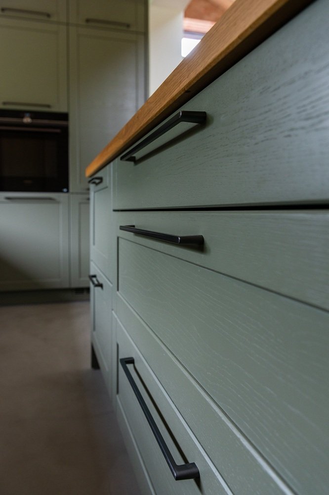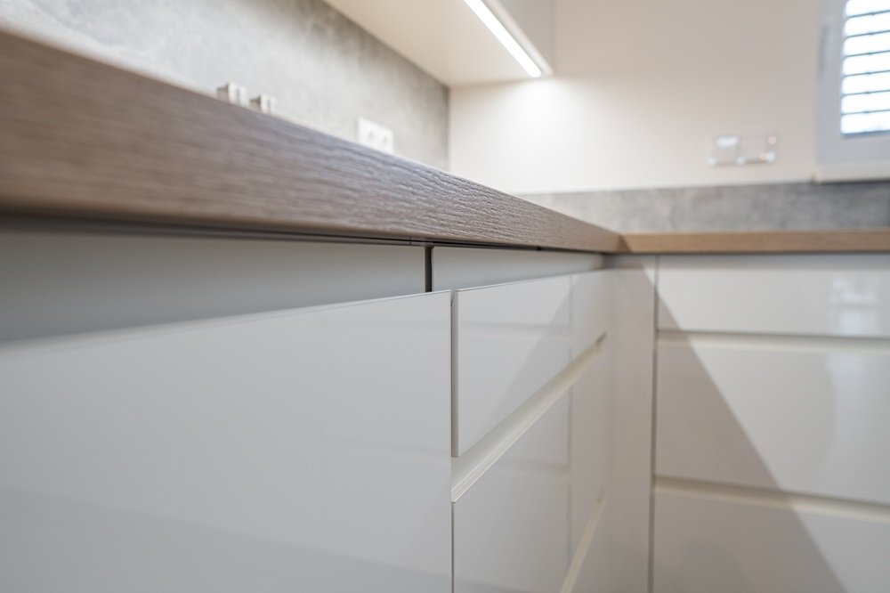 Frézované úchytky, nábytková madla, elektrické otvírání - vše vyladíme dle vašeho návrhu.